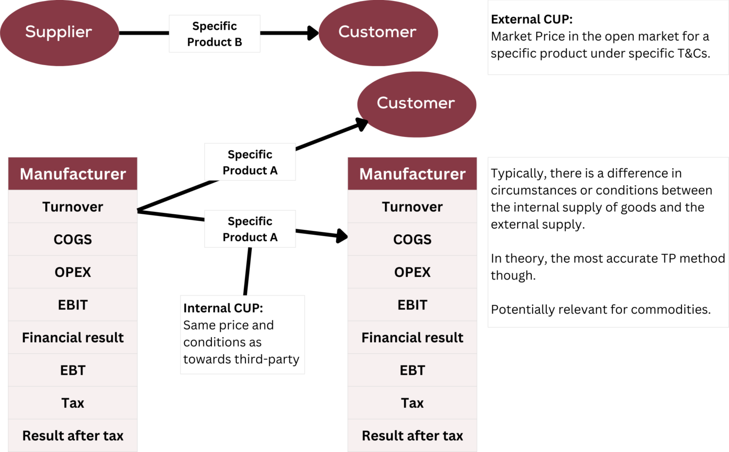 By directly comparing prices with third-party transactions, CUP establishes a similar price for a similar product and with a similar quantity and terms as charged towards third parties or in the open market. That’s how CUP ensures fair pricing.